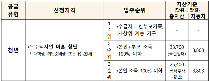 A. 만 19~39세의 미혼 청년으로, 무주택자이며 일정 소득 및 자산 기준 이하일 경우 지원 가능합니다.