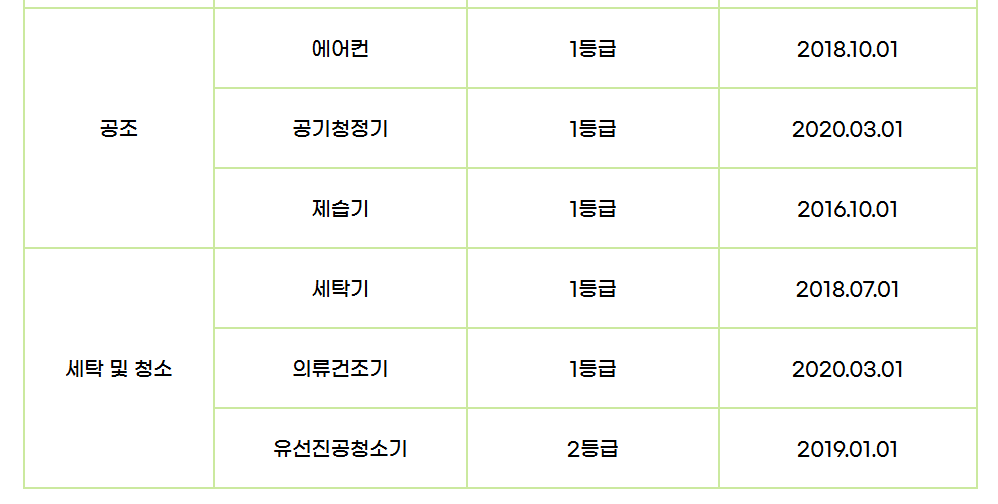 | 제품 조건 | 1등급 에너지 효율 제품 |
