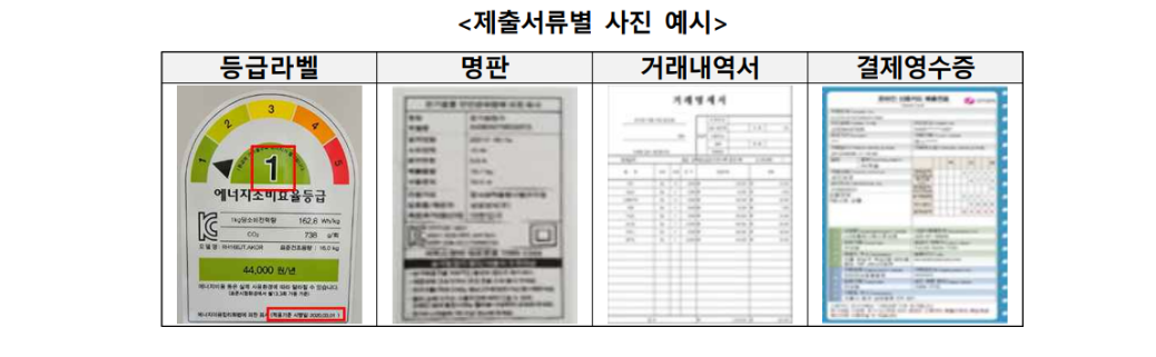 - 등급라벨 사진: 모델명, 효율등급, 적용기준 시행일자